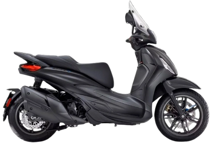 El Piaggio Beverly S destaca por su alma deportiva, expresada a través de un acabado mate con efecto grafito en detalles como las llantas, el asidero trasero y los marcos del panel de instrumentos y el faro LED. Los detalles en azul de la «S» del logotipo, la rueda delantera y el característico «corbata» frontal acentúan su carácter decidido. El distintivo frontal, con una rejilla de ventilación en forma de V y una parrilla de nido de abeja, junto con la elegante parte trasera y las costuras de los asientos en dos tonos, completan el diseño, creando la fusión perfecta entre un scooter deportivo de rueda alta y un potente GT.